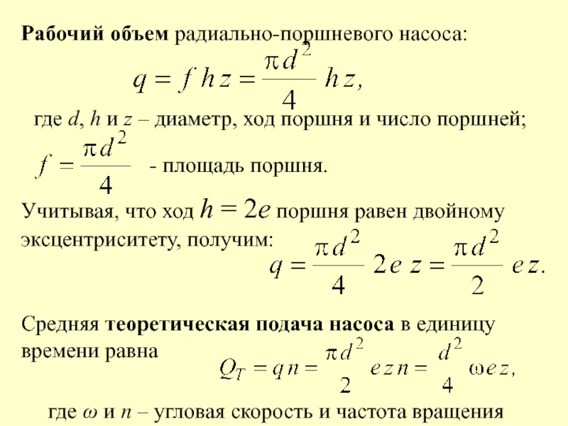 Учитывая, что ход h = 2e поршня равен двойному эксцентриситету, получим: