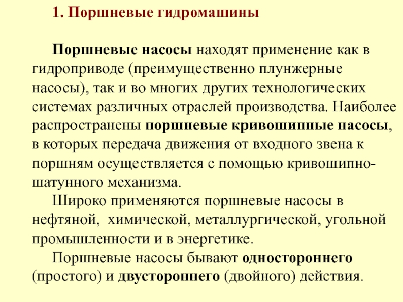 Рисунок 2 - Схема поршневого насоса двустороннего действия