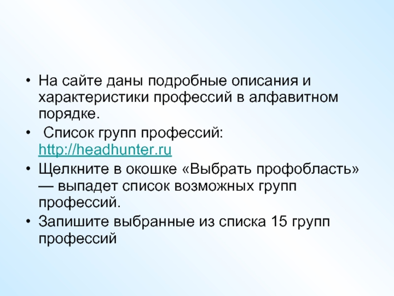 Познакомитесь с информацией на сайтах, где содержаться списки профессий относящихся к