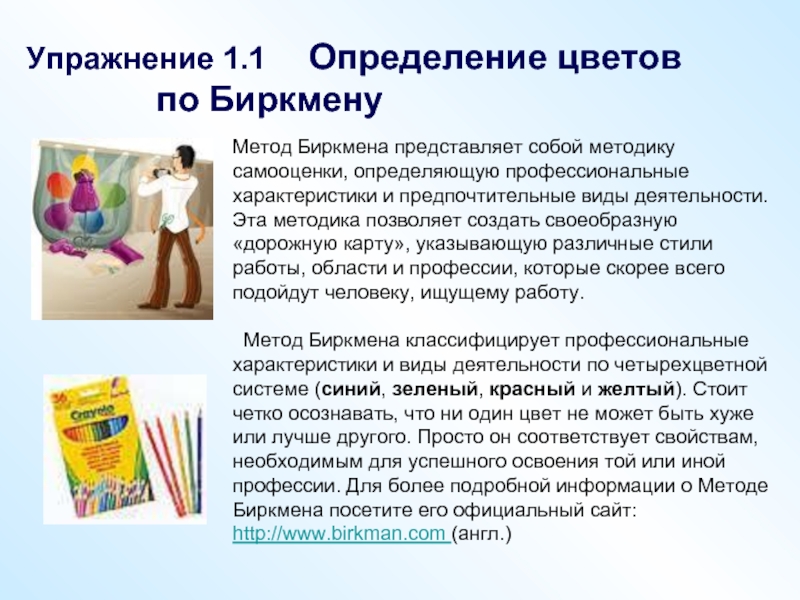 Слайд 3Упражнение 1.1 Определение цветов по Биркмену