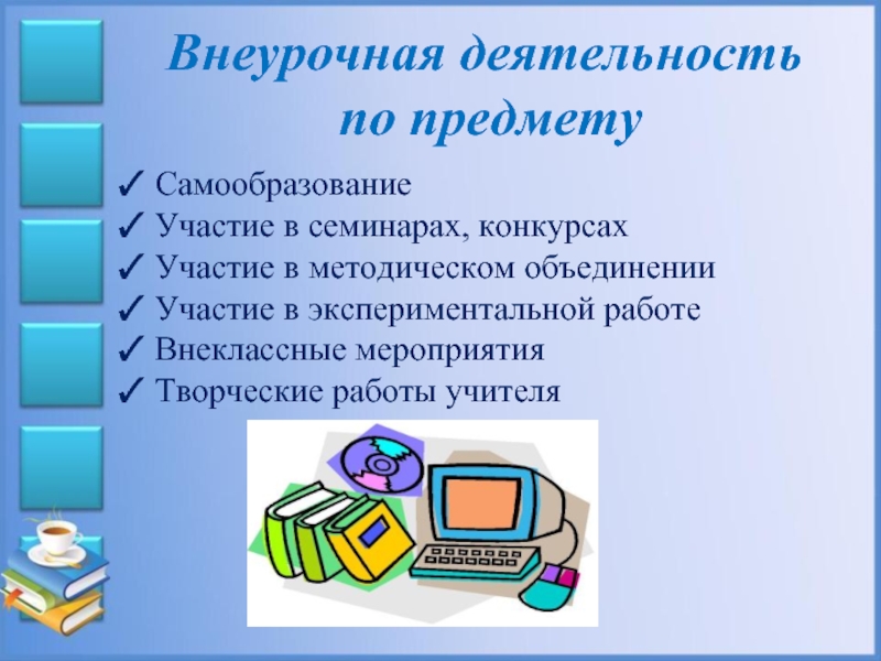 педагогическая (учитель отслеживает самостоятельную, внеаудиторную работу учащегося и совершенствование его языкового уровня)