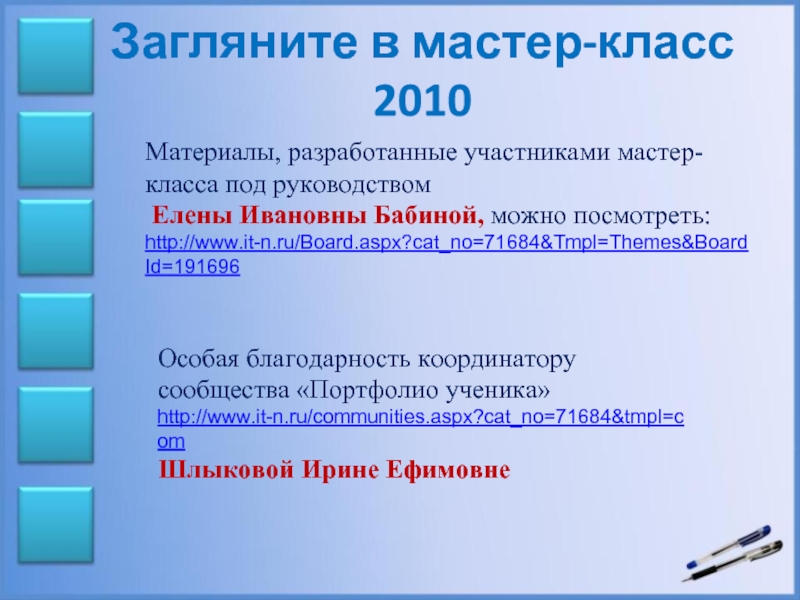 Особая благодарность координатору сообщества «Портфолио ученика»