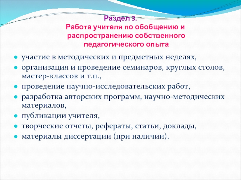 описания способов использования информационнокоммуникационных технологий в образовательном процессе, технологий обучения детей с проблемами развития и т.д.