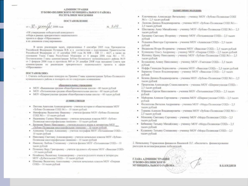 3. Конкурс лучших учителей общеобразовательных учреждений для денежного поощрения за высокое педагогическое мастерство и значительный вклад в образование (обладатель гранта) - 2008 год