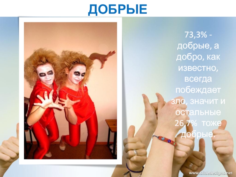 73,3% -добрые, а добро, как известно, всегда побеждает зло, значит и