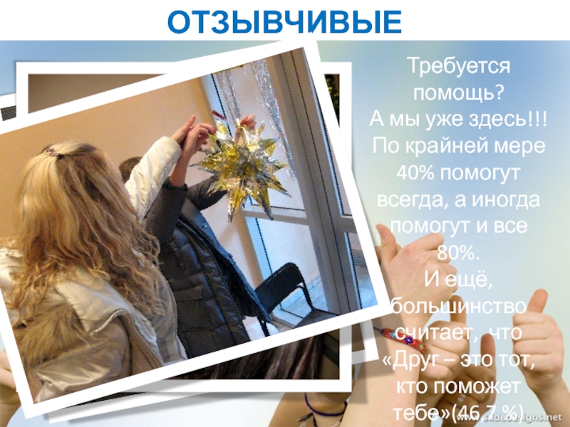 И ещё, большинство считает, что «Друг – это тот, кто поможет тебе»(46,7 %)