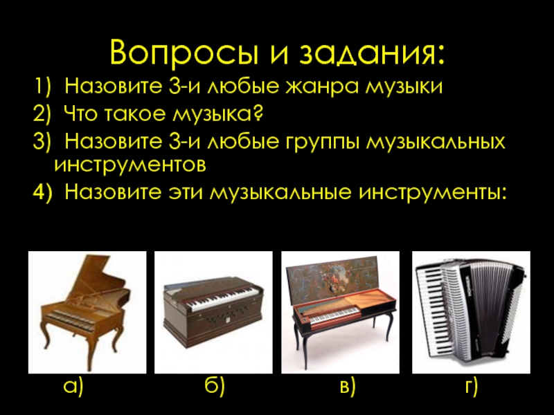 клавесин, б) фисгармония, в) клавикорд, г)аккордеон.