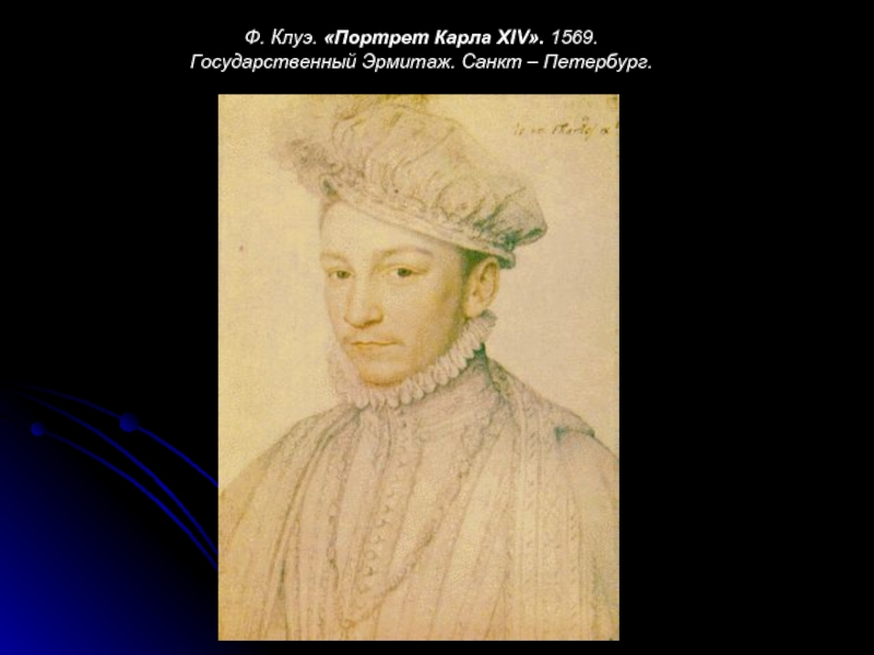 Слайд 20Ф. Клуэ. «Портрет Карла XIV». 1569.