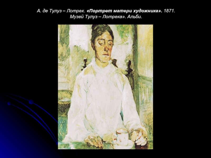 Слайд 32А. де Тулуз – Лотрек. «Портрет матери художника». 1871.