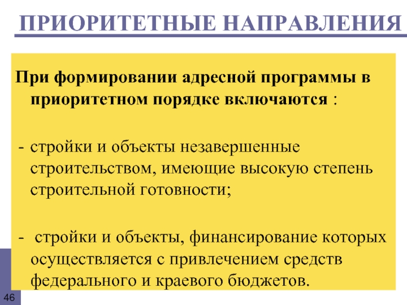 Слайд 46ПРИОРИТЕТНЫЕ НАПРАВЛЕНИЯ