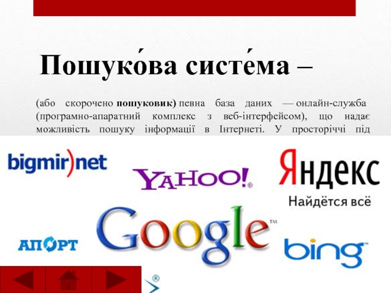 Слайд 3Пошуко́ва систе́ма –