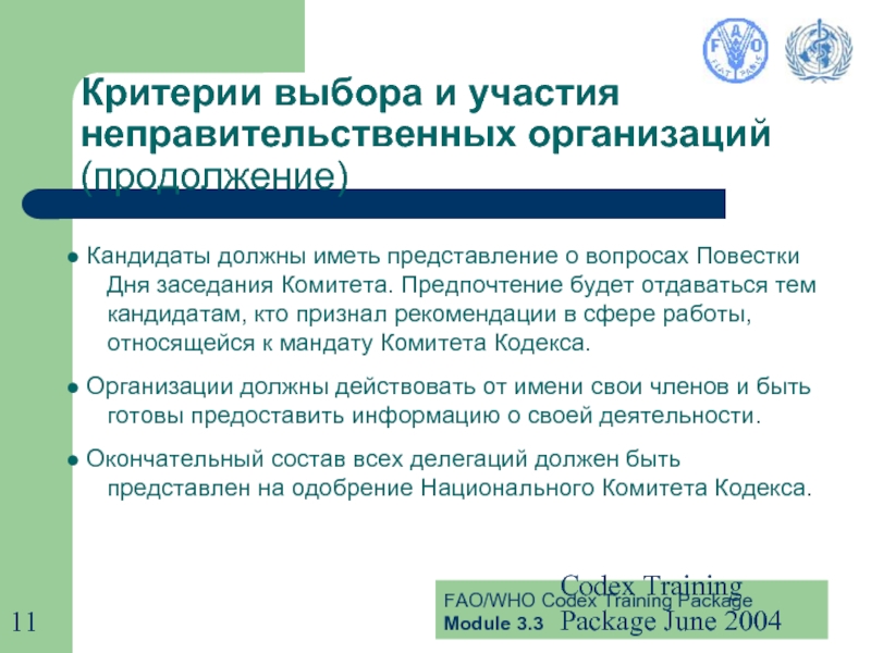 Критерии выбора и участия неправительственных организаций (продолжение)