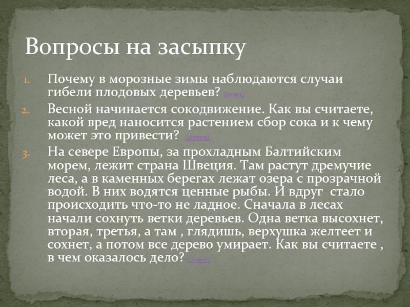 Вопросы на засыпку
