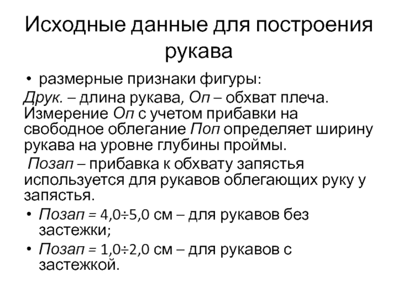 Позап – прибавка к обхвату запястья используется для рукавов облегающих руку у запястья.