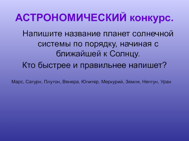 Марс, Сатурн, Плутон, Венера, Юпитер, Меркурий, Земля, Нептун, Уран