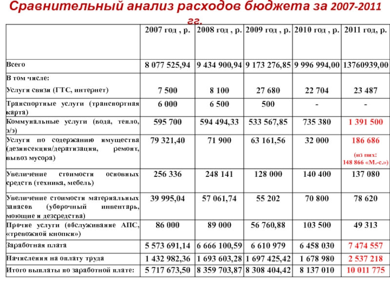 Сравнительный анализ расходов бюджетных средств за 2007-2011 гг. О.М.Серышева, директор