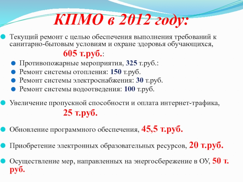 Реализация Программы модернизации образования на период 2012-2013 гг. О.М.Серышева, директор