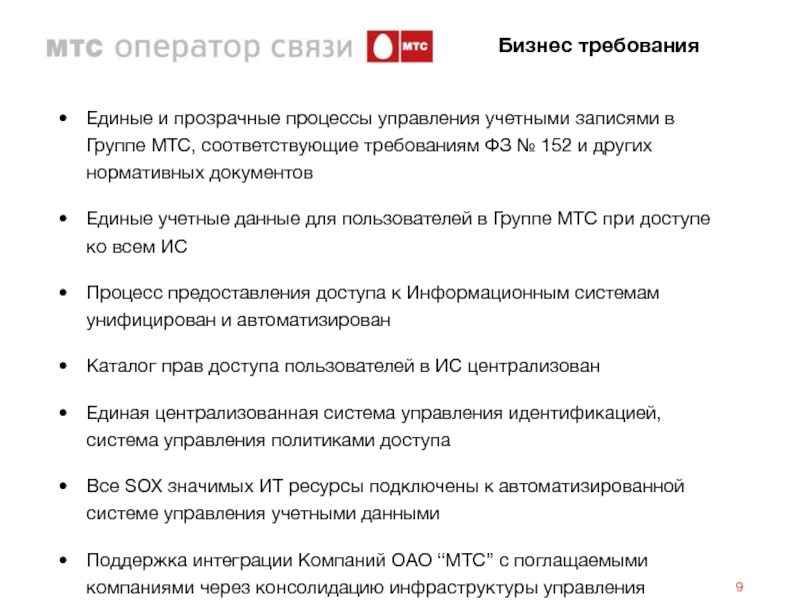 * Основные: ERP, биллинговые системы, службы каталогов, электронная почта, корпоративные информационные порталы, системы удаленного доступа, IP-телефония