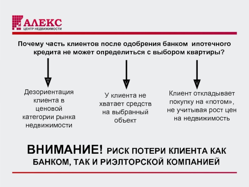 ВНИМАНИЕ! РИСК ПОТЕРИ КЛИЕНТА КАК БАНКОМ, ТАК И РИЭЛТОРСКОЙ КОМПАНИЕЙ