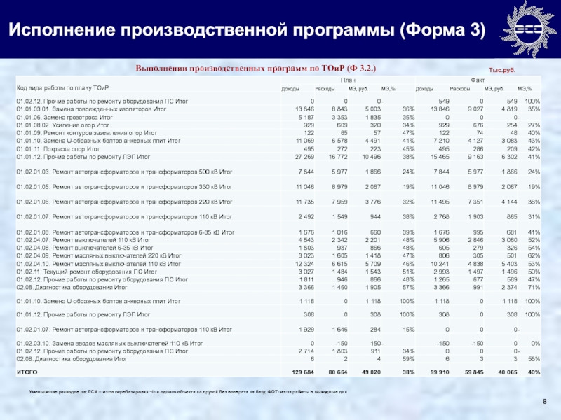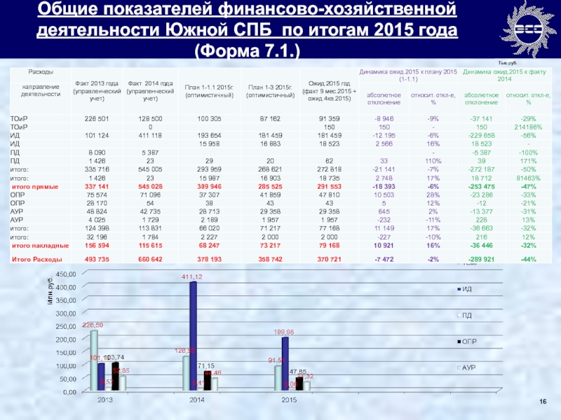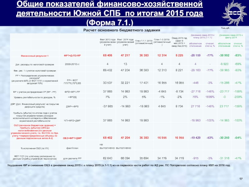 Ухудшение ФР и снижение ОБЗ в динамике ожид.2015 г. к плану 2015 (в.1-1.1) из-за переноса части работ по ИД рек. ПС Погорелово согласно плану КВЛ на 2016 год.