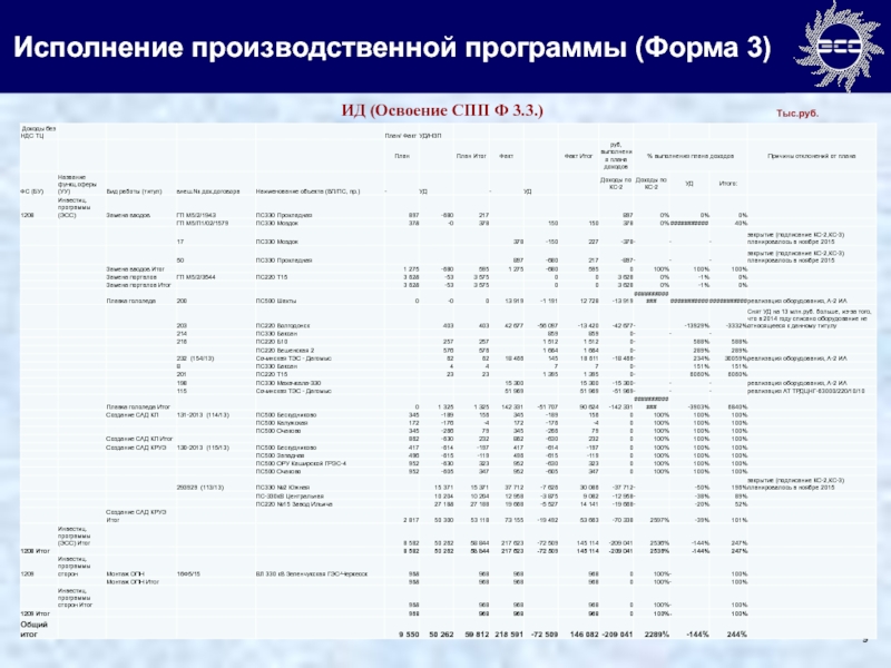 Снижение доходов по ИД, из-за переноса части работ на 2016 года по титулу рек. ПС Погорелово, согласно плану КВЛ.