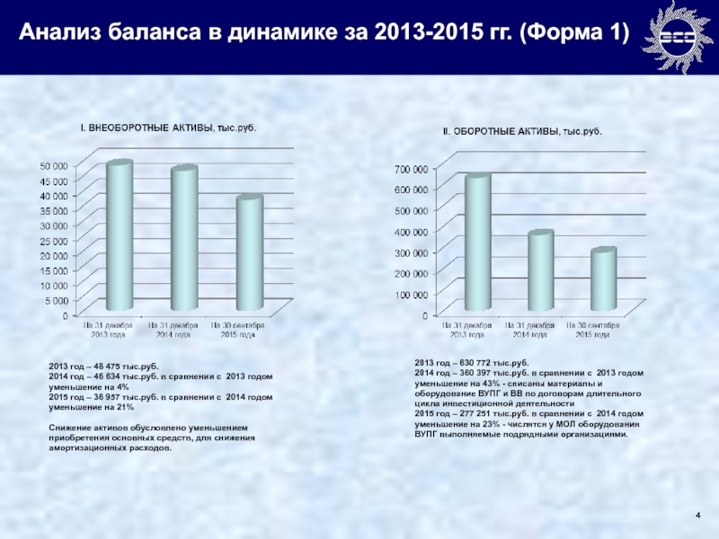 Анализ баланса в динамике за 2013-2015 гг. (Форма 1)