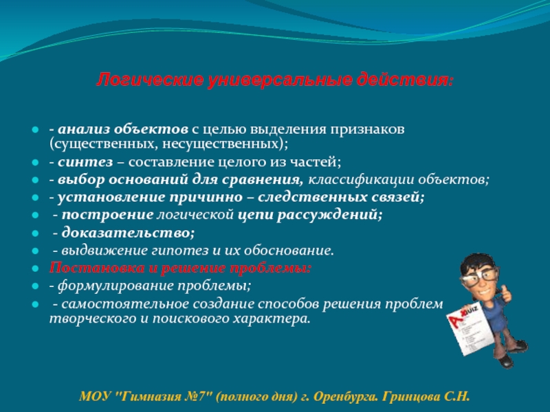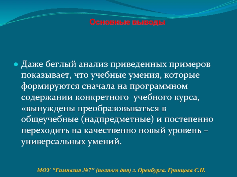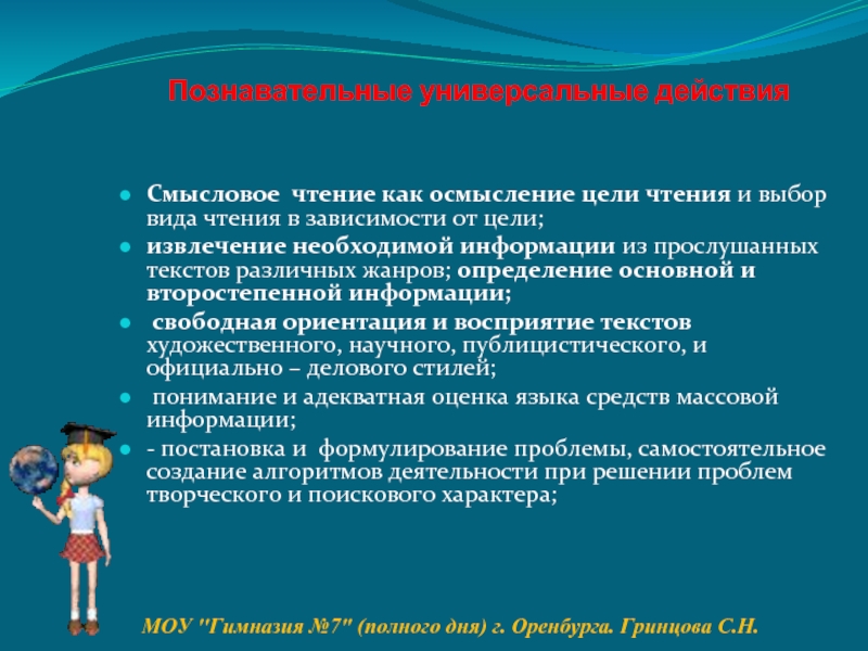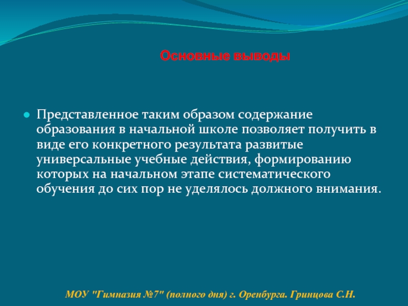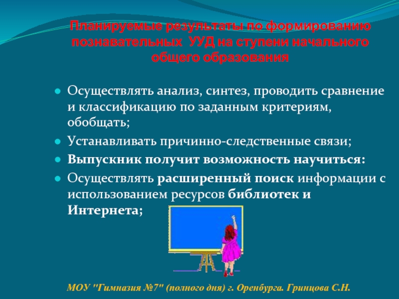 МОУ "Гимназия №7" (полного дня) г. Оренбурга. Гринцова С.Н.