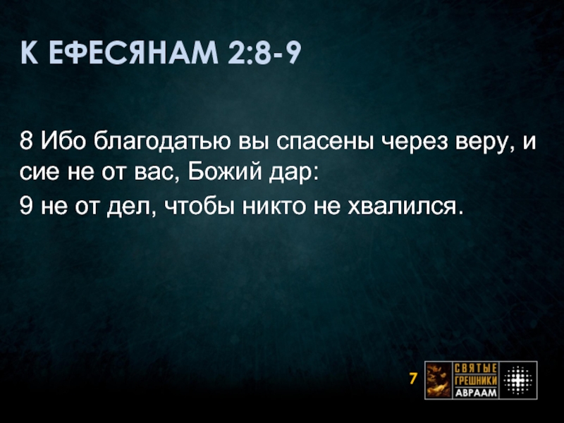 Слайд 7К ЕФЕСЯНАМ 2:8-9