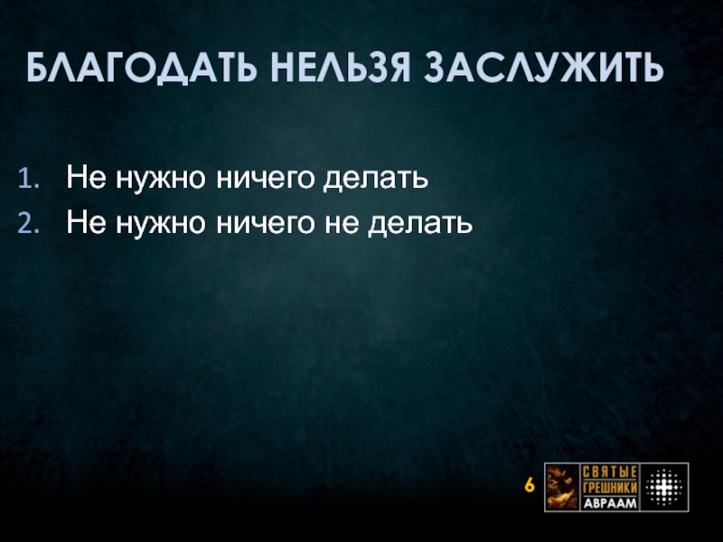 Слайд 6БЛАГОДАТЬ НЕЛЬЗЯ ЗАСЛУЖИТЬ