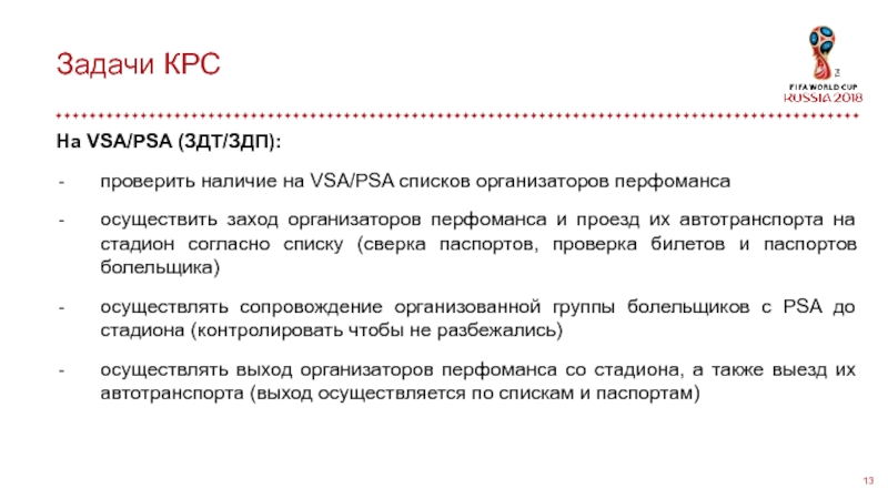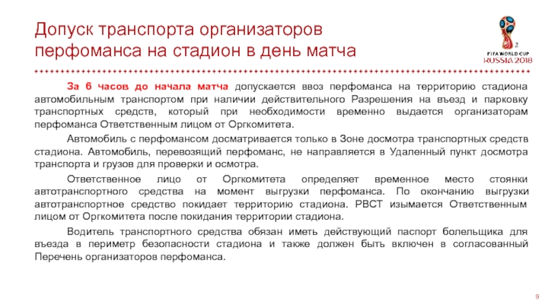 Допуск транспорта организаторов перфоманса на стадион в день матча