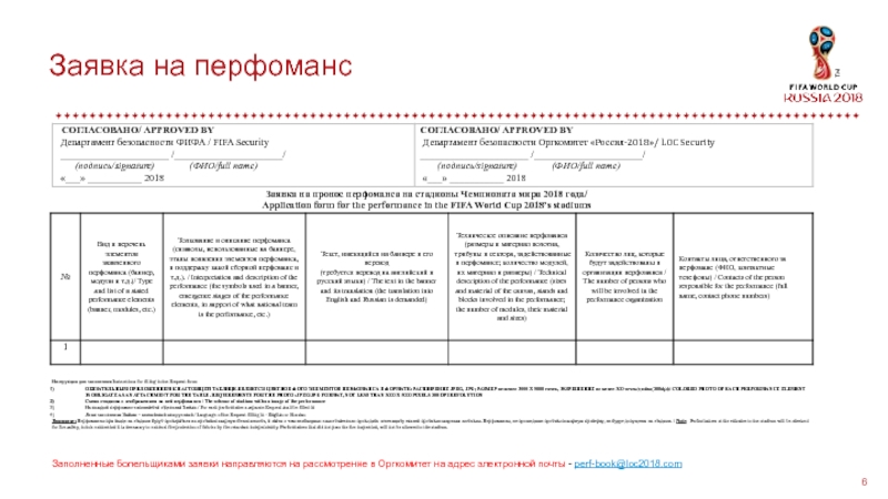 Заполненные болельщиками заявки направляются на рассмотрение в Оргкомитет на адрес электронной почты - perf-book@loc2018.com