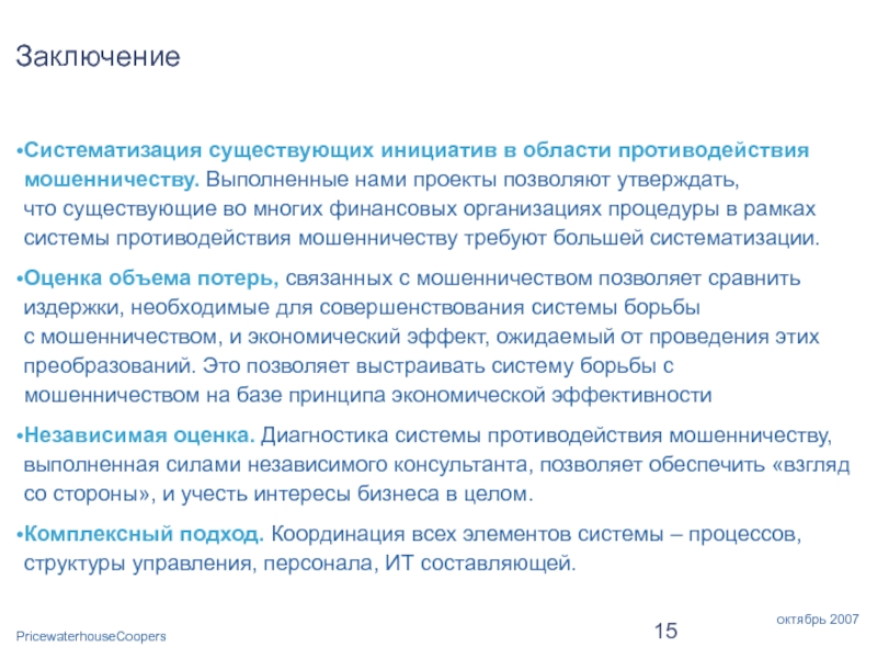 © 2007 "ПрайсвотерхаусКуперс Раша Б.В.". Все права защищены.Под "PricewaterhouseCoopers" понимается компания "ПрайсвотерхаусКуперс Раша Б.В." или, в зависимости от контекста, другие фирмы, входящие в глобальную сеть компаний PricewaterhouseCoopers International Limited, каждая из которых является самостоятельным юридическим лицом.