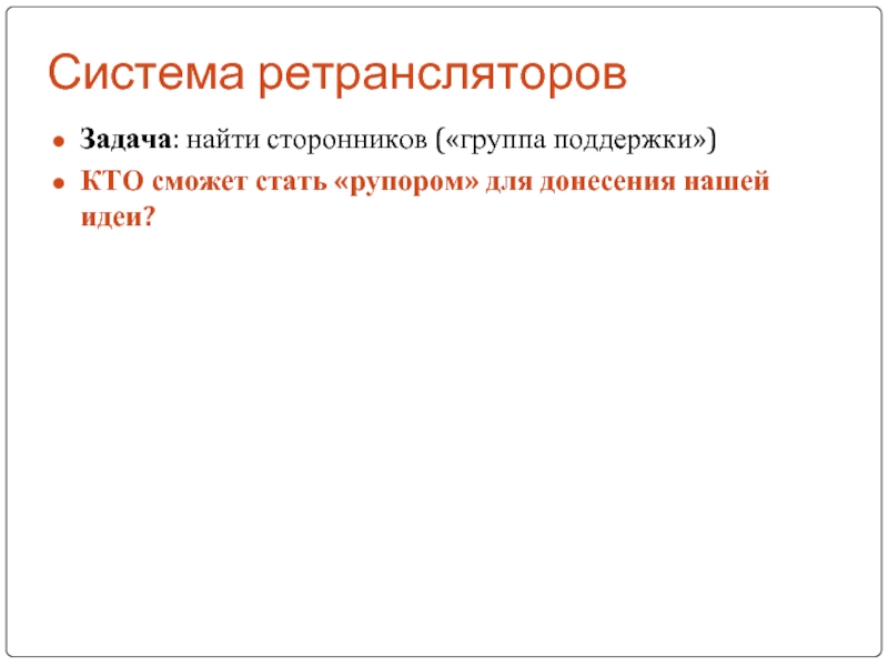 Задача: найти сторонников («группа поддержки»)