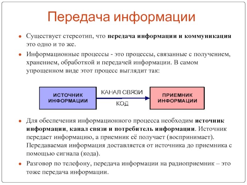 Существует стереотип, что передача информации и коммуникация это одно и