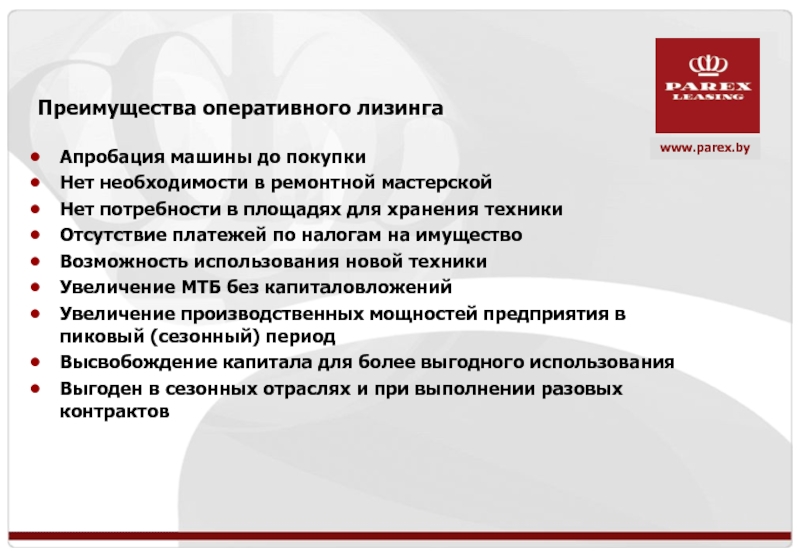 Преимущества оперативного лизинга