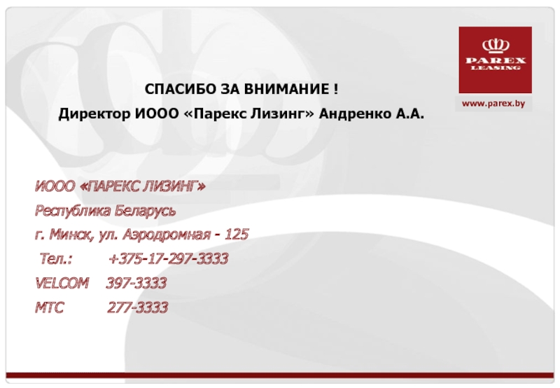 Директор ИООО «Парекс Лизинг» Андренко А.А.