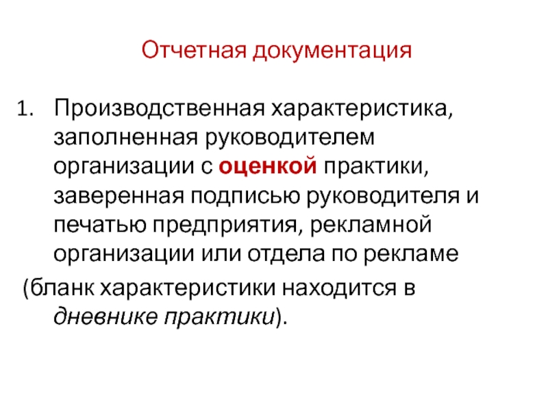 (бланк характеристики находится в дневнике практики).