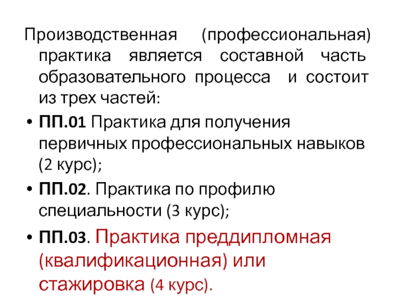 Слайд 2Производственная (профессиональная) практика является составной часть образовательного процесса и состоит из