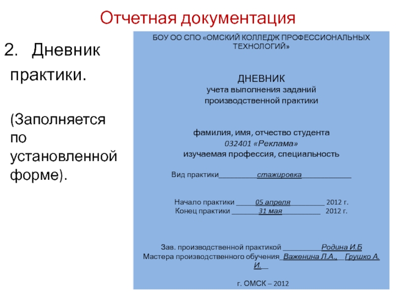 Слайд 7Отчетная документация