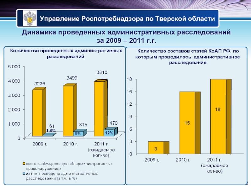 Количество составов статей КоАП РФ, по которым проводилось административное расследование