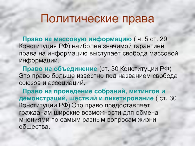 * Право на свободу мысли и слова. (ч.1 ст. 29 Конституции РФ)
