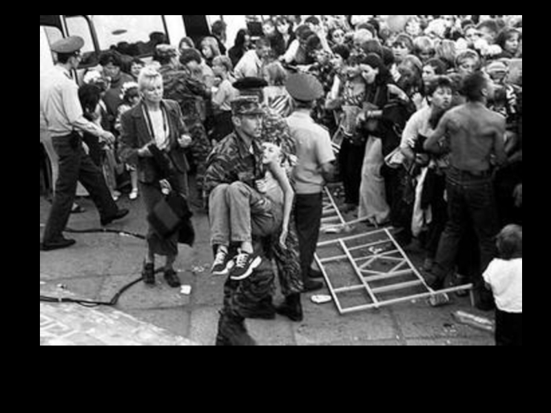 Слайд 6При большом скоплении людей начинают действовать законы толпы и возможно возникновении