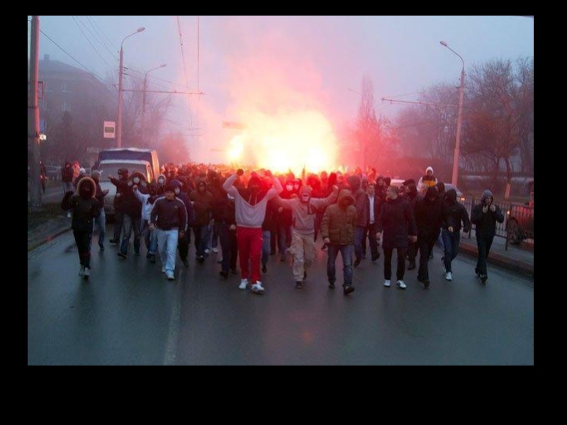 При угрозе беспорядков следует немедленно покинуть зал, стадион.