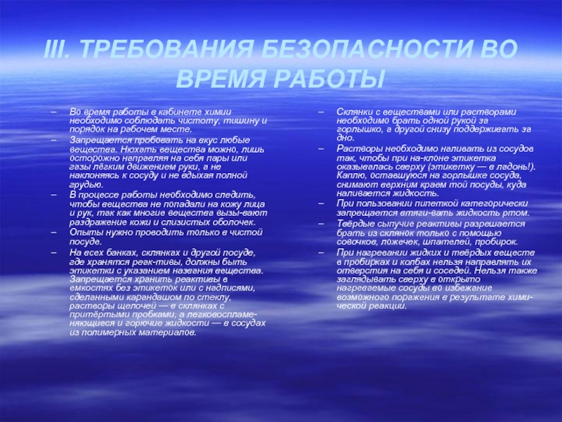 Слайд 5III. ТРЕБОВАНИЯ БЕЗОПАСНОСТИ ВО ВРЕМЯ РАБОТЫ