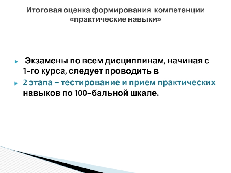 Формы экзаменов по приему практических навыков рекомендуются следующие: