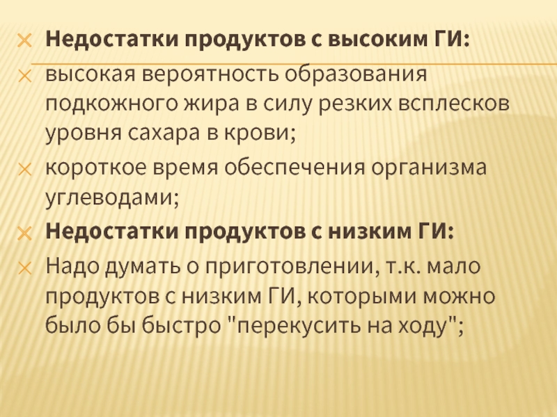 Слайд 11Недостатки продуктов с высоким ГИ:
