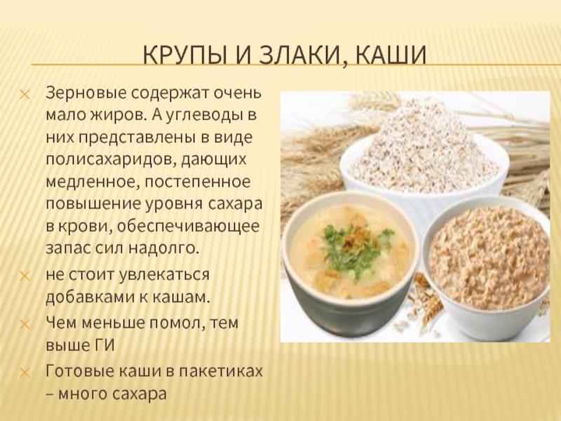 Зерновые содержат очень мало жиров. А углеводы в