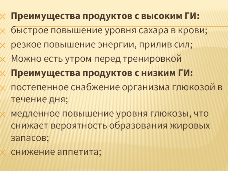 Слайд 10Преимущества продуктов с высоким ГИ: