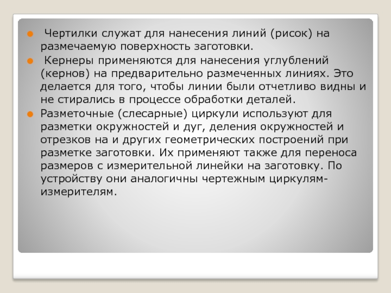 Чертилки служат для нанесения линий (рисок) на размечаемую поверхность заготовки.