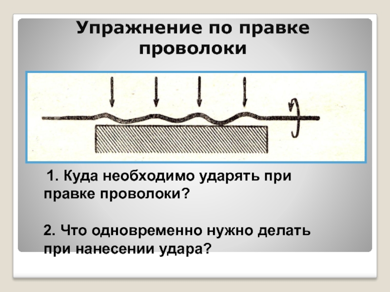 Толстую стальную проволоку правят на плите, легко ударяя по выпуклым местам молотком